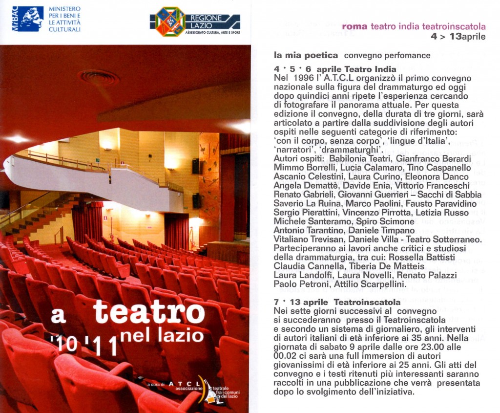 L' A.T.C.L. (Associazione Teatrale fra i Comuni del Lazio) invita i giovani drammaturghi italiani, di età inferiore ai 35 anni a prendere parte al secondo convegno nazionale sulla nuova drammaturgia italiana.